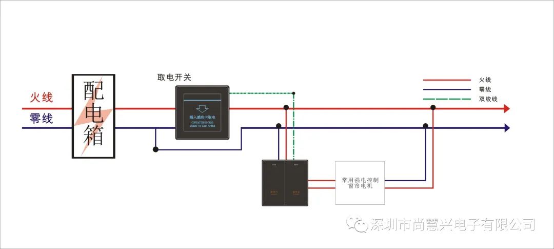 電機類型: 01三線制 零線、正轉線、反轉線(不含地線) 02四線制 零線、火線、正轉線、反轉線(不含地線) 03干接點 零線、火線、干接點正轉線(兩芯)、干接點反轉線(兩芯) 可控制類型 上述電機類型1、2項均可控制,第3項干接點需定制,不推薦使用,我司窗簾開關控制原理與燈光控制原理一致,當按下開關時,輸出220V電壓,電機接收到電壓后正轉、反轉。 布線: 1 )三線制 窗簾開關零線、火線供電,窗簾電機零線接通,窗簾開關正轉線、反轉線到窗簾電機,窗簾開關485雙絞線與開關相連。 2)四線制 窗簾開關零線、火線供電,窗簾電機零線、火線接通,窗簾開關正轉線、反轉線到窗簾電機,窗簾開關485雙絞線與開關相連。 功能 1)推門窗簾自動打開/關閉(需搭配我司門磁、取電開關、窗簾開關) 2)插卡窗簾自動打開/關閉(需搭配我司取電開關、窗簾開關) 3)明亮模式窗簾自動打開(需搭配我司智能開關、窗簾開關) 4)睡眠模式窗簾自動關閉(需搭配我司智能開關、窗簾開關) 5)拔卡窗簾自動關閉/打開(需搭配我司取電開關、窗簾開關) 6)互鎖(我司窗簾開關均默認互鎖,窗簾開與窗簾關只能打開一個,避免電機燒掉) 7)延時(我司窗簾開關均默認延時,窗簾開與窗簾關切換時自帶延時,避免電機燒掉) 8)延時自動關閉(當按下窗簾開或者窗簾關,無需繼續操作,延時兩分鐘后自動關閉,避免電機一直在工作,也有效解決夜間開關背光影響客人休息) 特別注意: 1)以上布線說明為一個電機的線路,兩個電機需要相應增加布線,原理與第一個電機一致。2)使用開門、插卡窗簾場景,取電開關必須做成強電485的。 我們的產品既能為客人提供更為安全、舒適、便捷的人性化服務的同時,又能達到節能、安全、健康、環保的目的更以時尚設計風格引導行業流行潮流。 掃碼關注我們