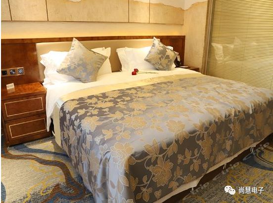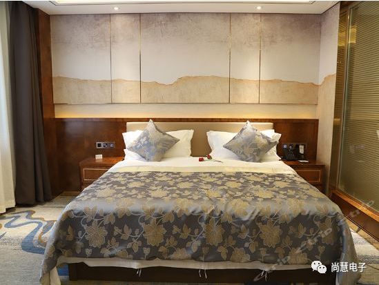 客房部擁有總統套房、商務套房、行政套房、豪華標準間、商務標準間,共136套,可同時容納260人入住。100M光纖無線信號、中央空調、凈水設備覆蓋,所有房間均安裝尚慧電子的電子門牌和智能輕觸開關,為客人提供更為安全、舒適、便捷的人性化服務的同時,又能達到節能、安全、健康、環保的目的更以時尚設計風格引導行業流行潮流。